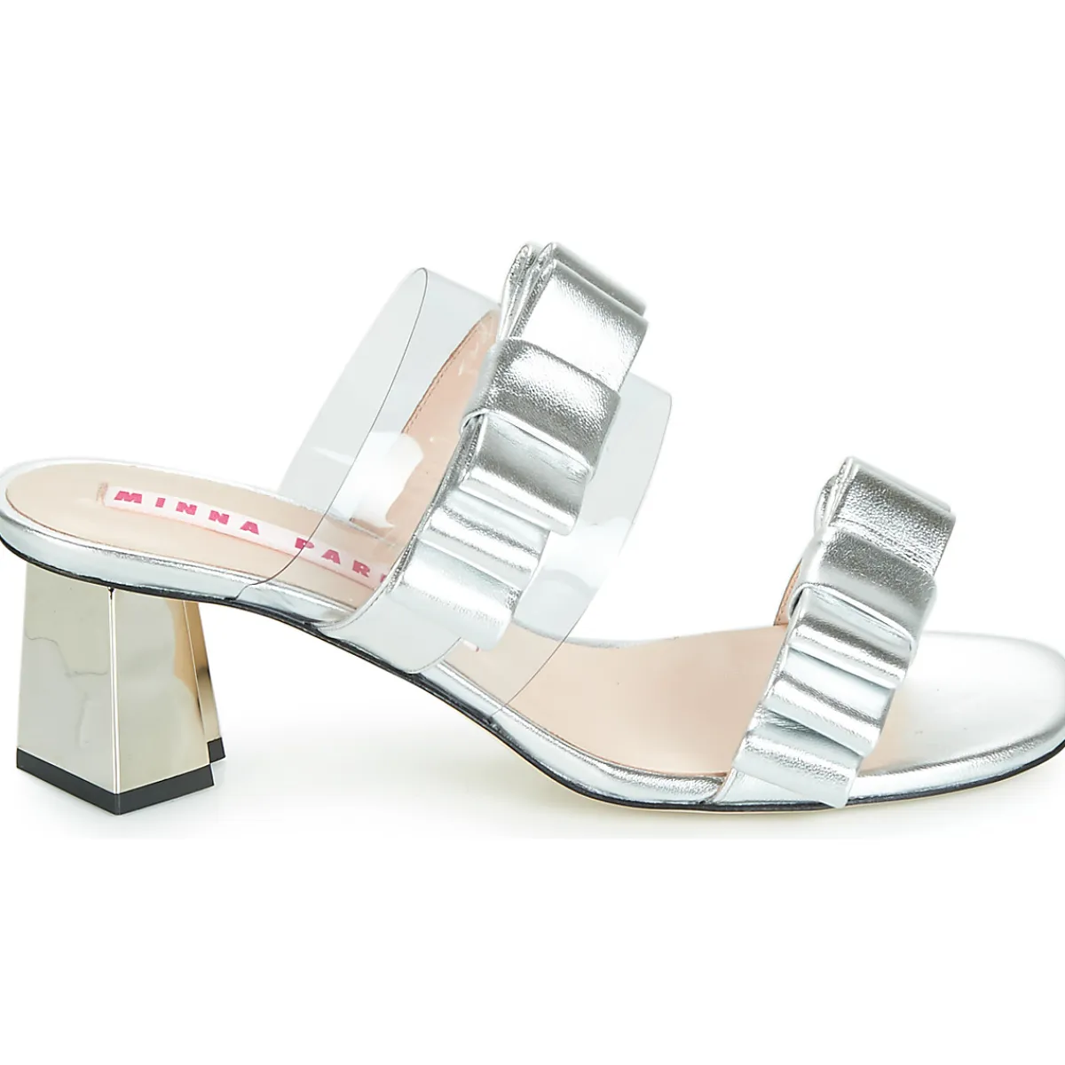 Cette saison, Minna Parikka présente un nu-pieds de couleur argentée qui a su retenir notre attention. Des brides en c…