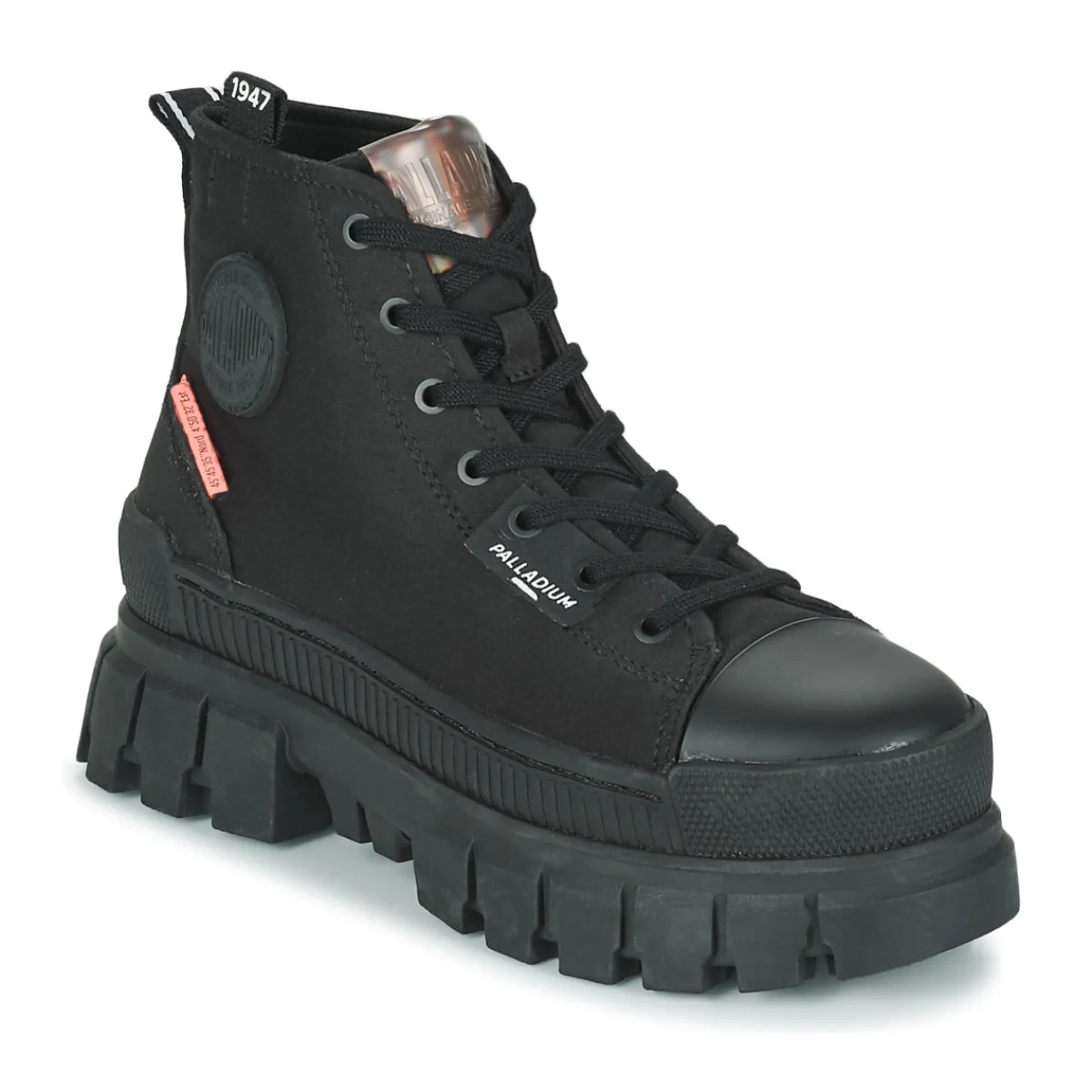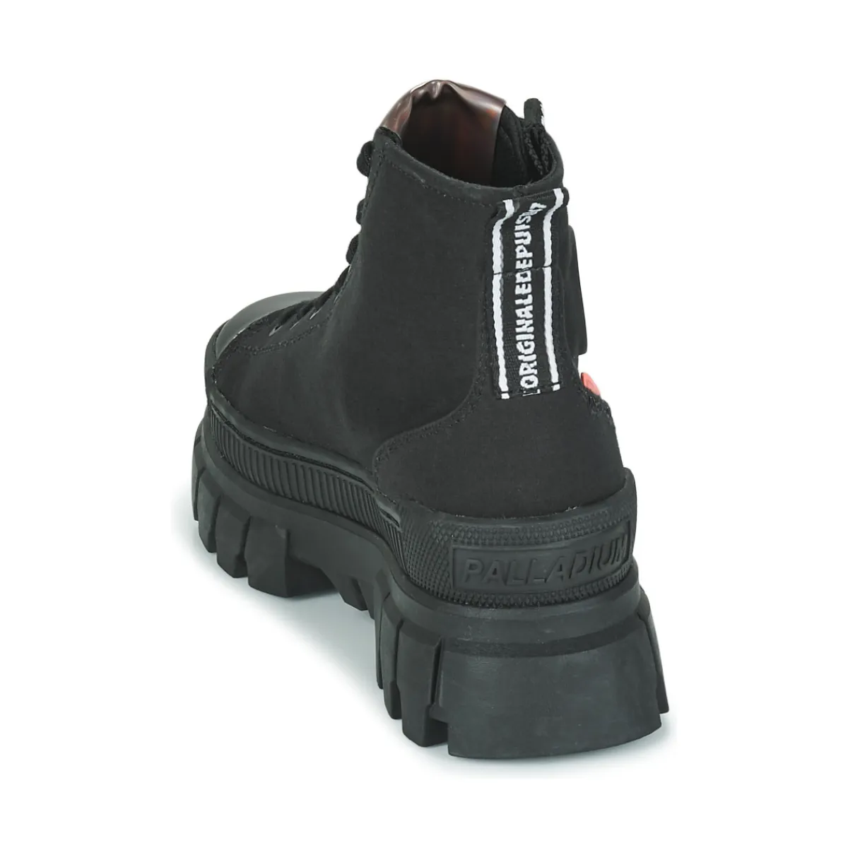 Confort et style sont de mise avec cette basket montante signée Palladium. Déclinée en cuir noir, elle affiche des li…