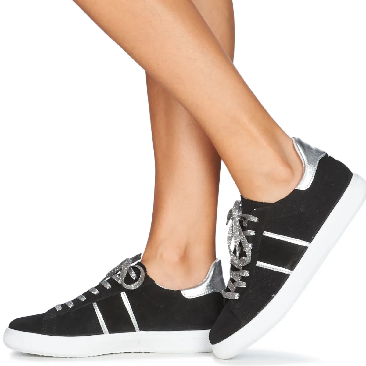 Cette basket basse signée Yurban est tout simplement essentielle.Avec sa tige en cuir et son coloris noir, elle se por…