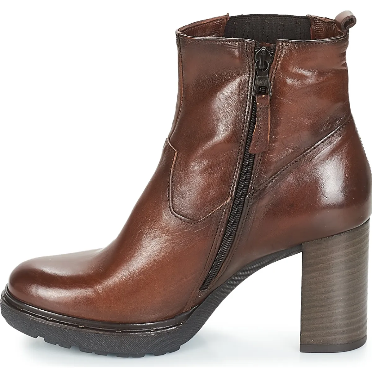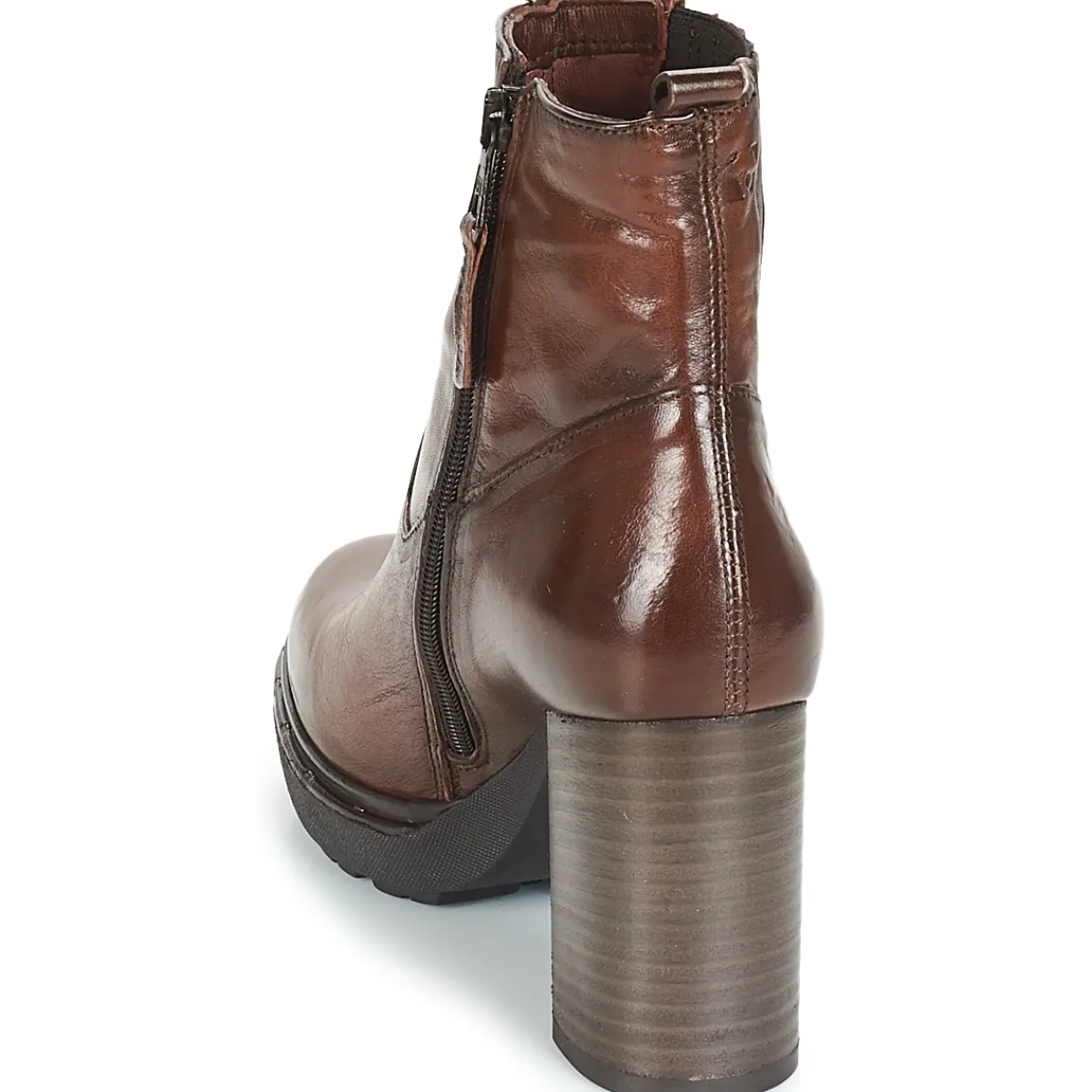 Les guetteuses de mode flasheront instantanément sur cette bottine marron !Elle a été imaginée en cuir avec une sem…