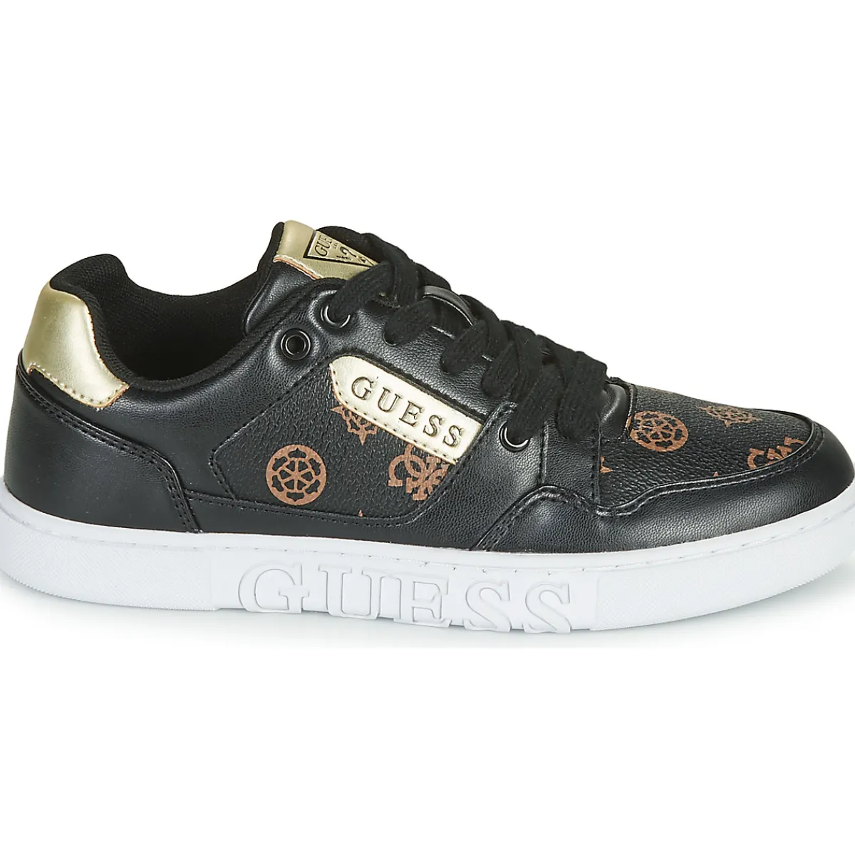 Mention ultra très bien pour Guess et sa toute dernière basket basse ! Avec son dessus en synthétique et son colori…