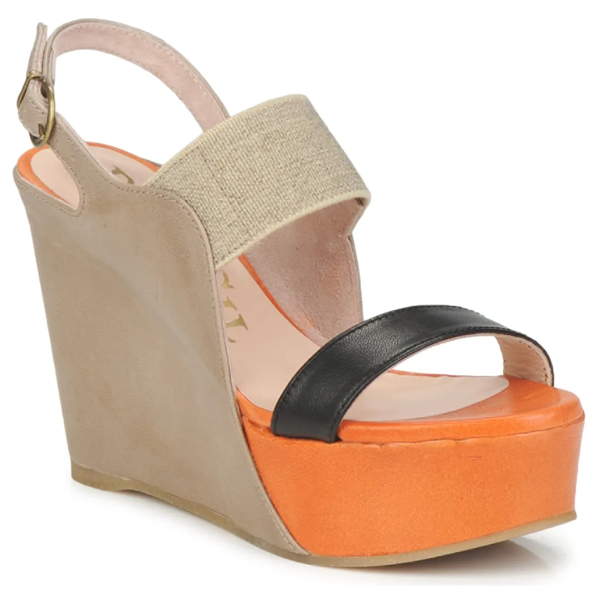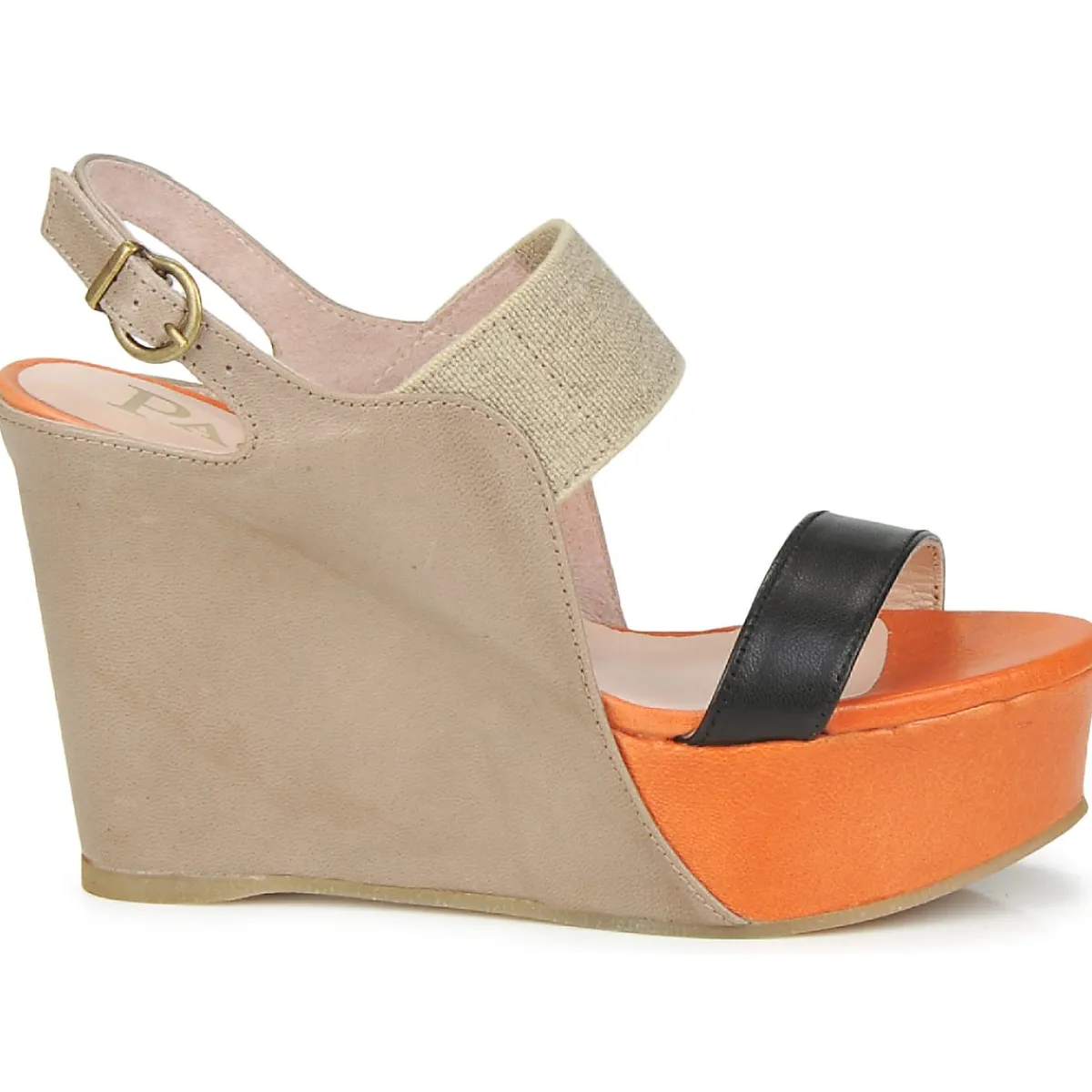 Avec sa semelle compensée enrobée d’un empiècement en cuir, qui sert aussi de bride de maintien sur l’arrière, ce n…