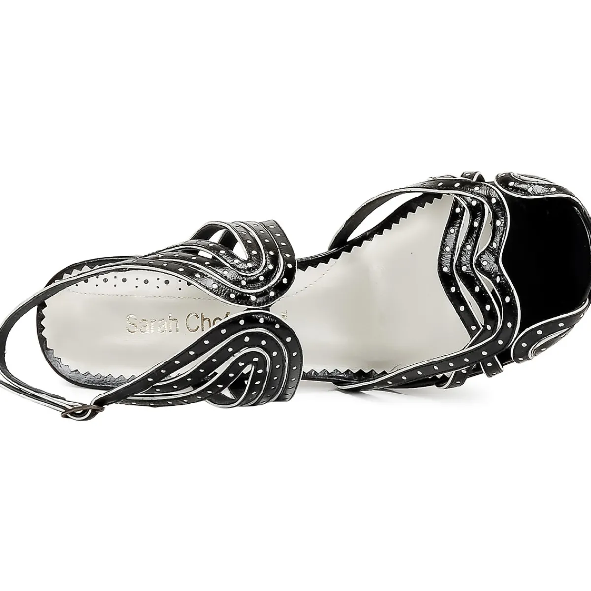 Harmonie de lanières délicatement ajourées, silhouette ultra-féminine, beau cuir : ce modèle signé Sarah Chofakia…