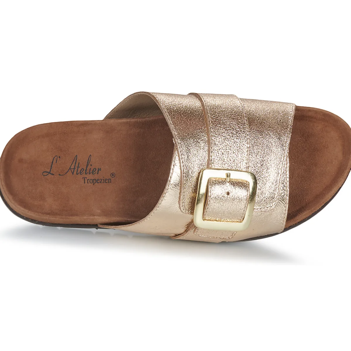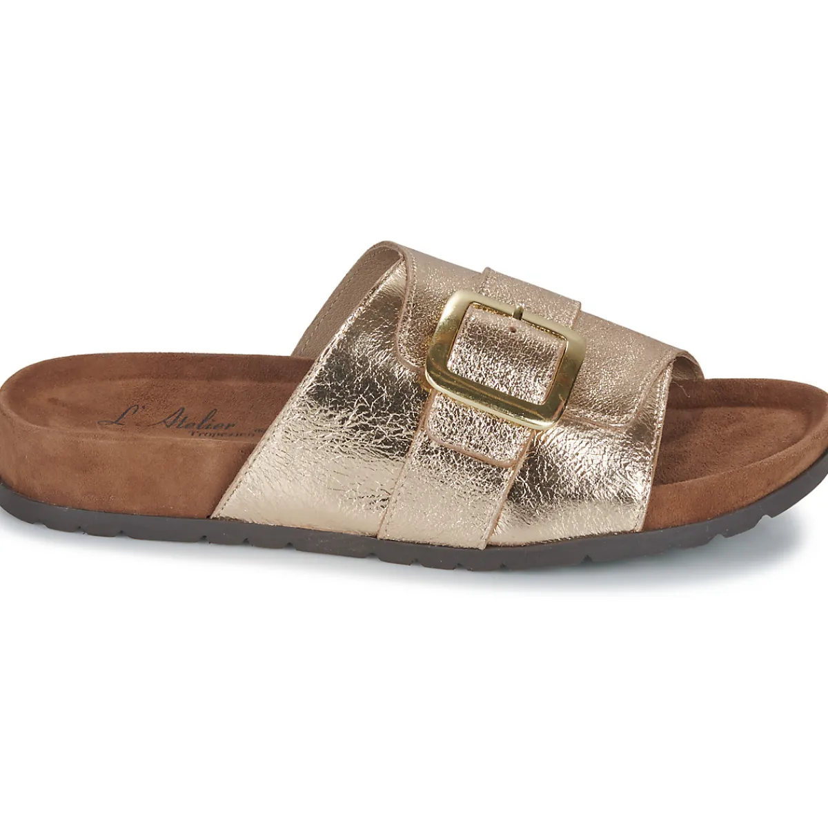 La mule est toujours aussi actuelle cette saison et L’Atelier Tropézien le confirme avec ce modèle au coloris doré ! …